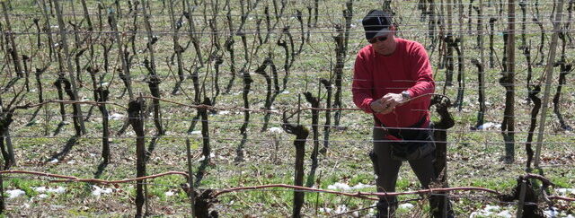 Die erste Ertragsregulierung beginnt im Winter: Beim Reben schneiden. Wenn die Sonne dabei auch noch scheint, geht es am Einfachsten.